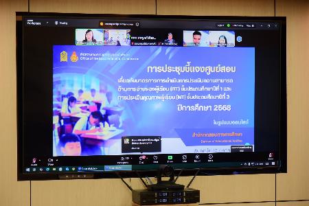 วันศุกร์ที่ 17 ตุลาคม 2568 เวลา 09.00 น. ดร.เกตุชญา วงษ์เพิก ผู้อำนวยการสำนักงานเขตพื้นที่การศึกษาประถมศึกษาสิงห์บุรี เป็นประธานในการประชุมรับฟังการชี้แจงศูนย์สอบการประเมินความสามารถด้านการอ่านของผู้เรียน (RT) ชั้นประถมศึกษาปีที่ 1 และการประเมินคุณภาพผู้เรียน (NT) ชั้นประถมศึกษาปีที่ 3 ประจำปีการศึกษา 2568 โดยมี ดร.กมลทิพย์ ใจเที่ยง รองผู้อำนวยการสำนักงานเขตพื้นที่การศึกษาประถมศึกษาสิงห์บุรี และนางภัทรรัตน์ สุขมา ผู้อำนวยการกลุ่มนิเทศ ติดตาม และประเมินผลการศึกษา เข้าร่วมประชุมผ่านระบบออนไลน์ Zoom Meeting ณ ห้องประชุมชั้น 2 อาคารแก้วภูวดล สำนักงานเขตพื้นที่การศึกษาประถมศึกษาสิงห์บุรี การประชุมในครั้งนี้มีวัตถุประสงค์เพื่อสร้างความเข้าใจที่ถูกต้องและเป็นไปในทิศทางเดียวกันในการดำเนินงานของศูนย์สอบ RT และ NT ให้มีความเรียบร้อย ถูกต้อง และโปร่งใส ตลอดจนเป็นการเตรียมความพร้อมของบุคลากรทางการศึกษาในการดำเนินการสอบประเมินผลอย่างมีประสิทธิภาพ เพื่อยกระดับคุณภาพการศึกษาในระดับประถมศึกษาอย่างยั่งยืน
